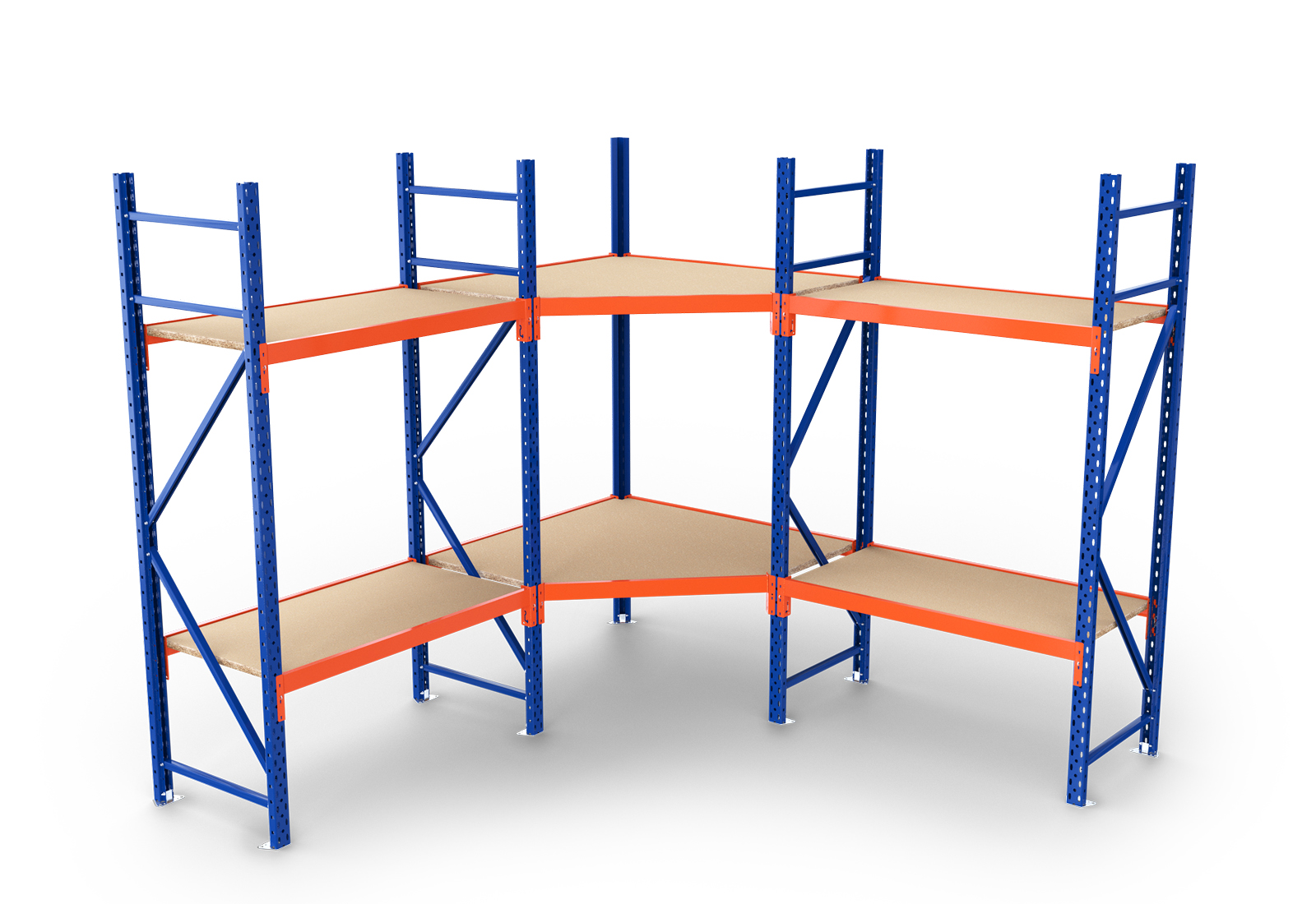 Perfil de soporte angular para estantería de almacén LR2000 de acero laminado en frío con una altura de 2,5 m. La carga por campo (carga máxima entre dos soportes de estantería de almacén) es de 2.000 kg. El recubrimiento en polvo de color azul protege el material de forma duradera contra la corrosión. El perfil de soporte se fija firmemente al suelo con M8 x 55 mm pernos de anclaje, lo que garantiza la estabilidad de toda la estantería de almacén.