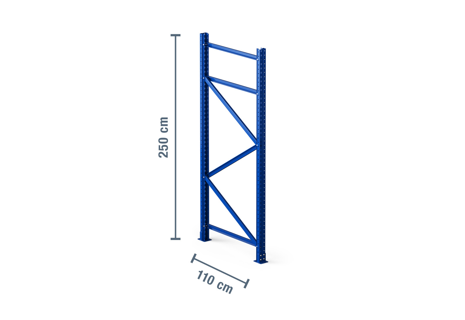 Con el color de señalización azul, garantizará la seguridad en su almacén y establecerá los detalles visuales. Estos soportes de estanterias para palets están firmemente fijados al suelo con 4 tornillos de anclaje (M12 x 100 mm).