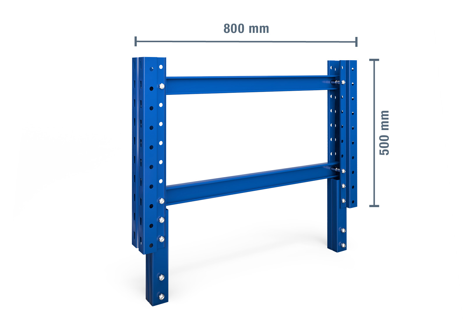 Con una altura de 500 mm y una profundidad de marco de 800 mm, esta extensión se adapta perfectamente a su sistema de estanterías de paletización existente. Nuestro producto promete una instalación sencilla y una mejora inmediata de las condiciones de almacenamiento. Tanto si opera un gran centro logístico como si tiene un almacén más pequeño, la ampliación del bastidor final es un complemento esencial para una gestión más segura y eficiente del almacén.