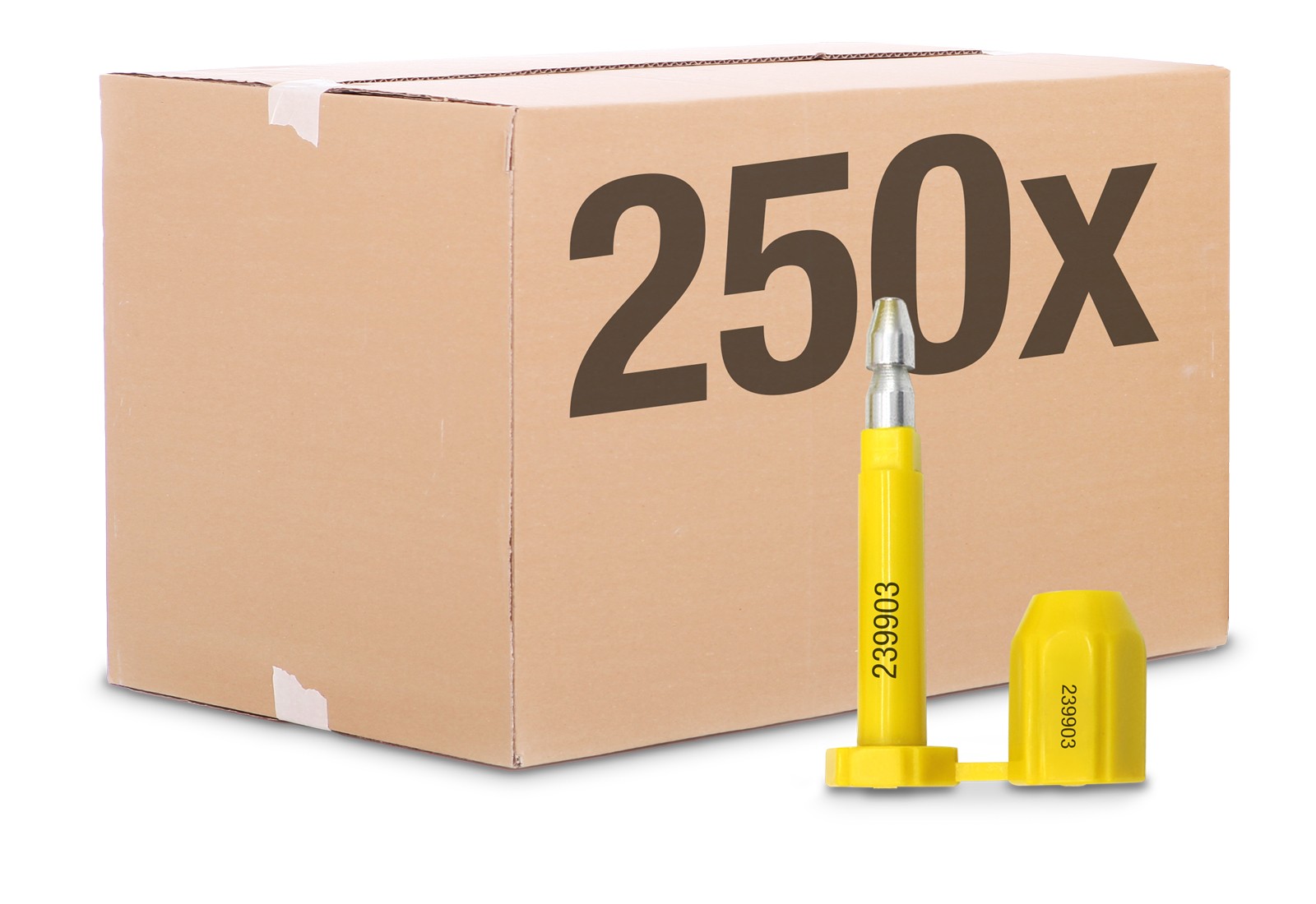 Nuestros precintos de alta seguridad para contenedores CP-85S son la opción ideal para las empresas del sector logístico que valoran la seguridad fiable y la facilidad de seguimiento. Los precintos para contenedores están especialmente diseñados para proteger los contenedores de accesos no autorizados y sólo pueden abrirse con cizallas o cizallas para hormigón. Los precintos para contenedores de TOPREGAL cumplen los estrictos requisitos de la norma internacional ISO/PAS 17712:2013 y se presentan en un llamativo color amarillo. Fabricados con un robusto ABS y un núcleo de acero, ofrecen una elevada resistencia a la tracción de más de 200 N/mm². Cada precinto pesa 62 g y tiene unas dimensiones compactas de 22,6 mm x 22,6 mm x 84,8 mm mm, con una longitud total de 110 mm incluida la tapa de cierre. El pasador de acero de la junta tiene un diámetro de 8 mm.