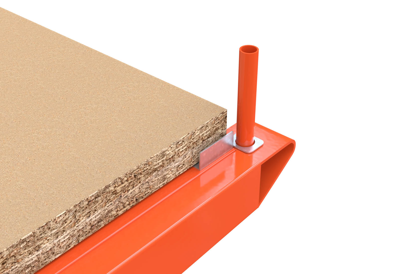 Gracias al aglomerado de 38 mm de espesor, puede utilizar sus TOPREGAL estanterías cantilever de forma aún más flexible y crear fácilmente áreas de almacenamiento adicionales. La balda de madera se fija en la parte delantera y trasera con dos barras de fijación incluidas en el volumen de suministro. Esto asegura las superficies de estantería contra posibles deslizamientos. Con las barras de sujeción, la capacidad de carga de la balda es de hasta 400 kg.