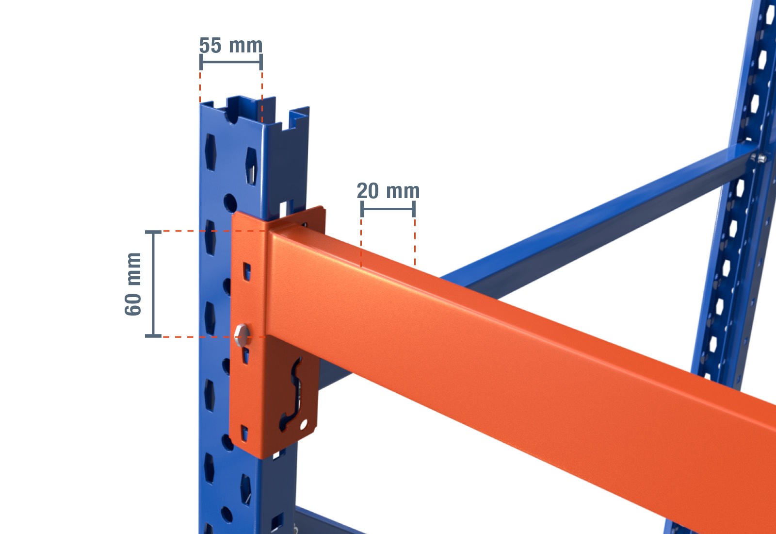 El número de niveles depende de la altura/peso de su mercancía almacenada. Un requisito previo es la distribución uniforme de las cargas (carga máxima de estantería de 500 kg, carga de bahía de 2000 kg - estantería de almacenamiento).