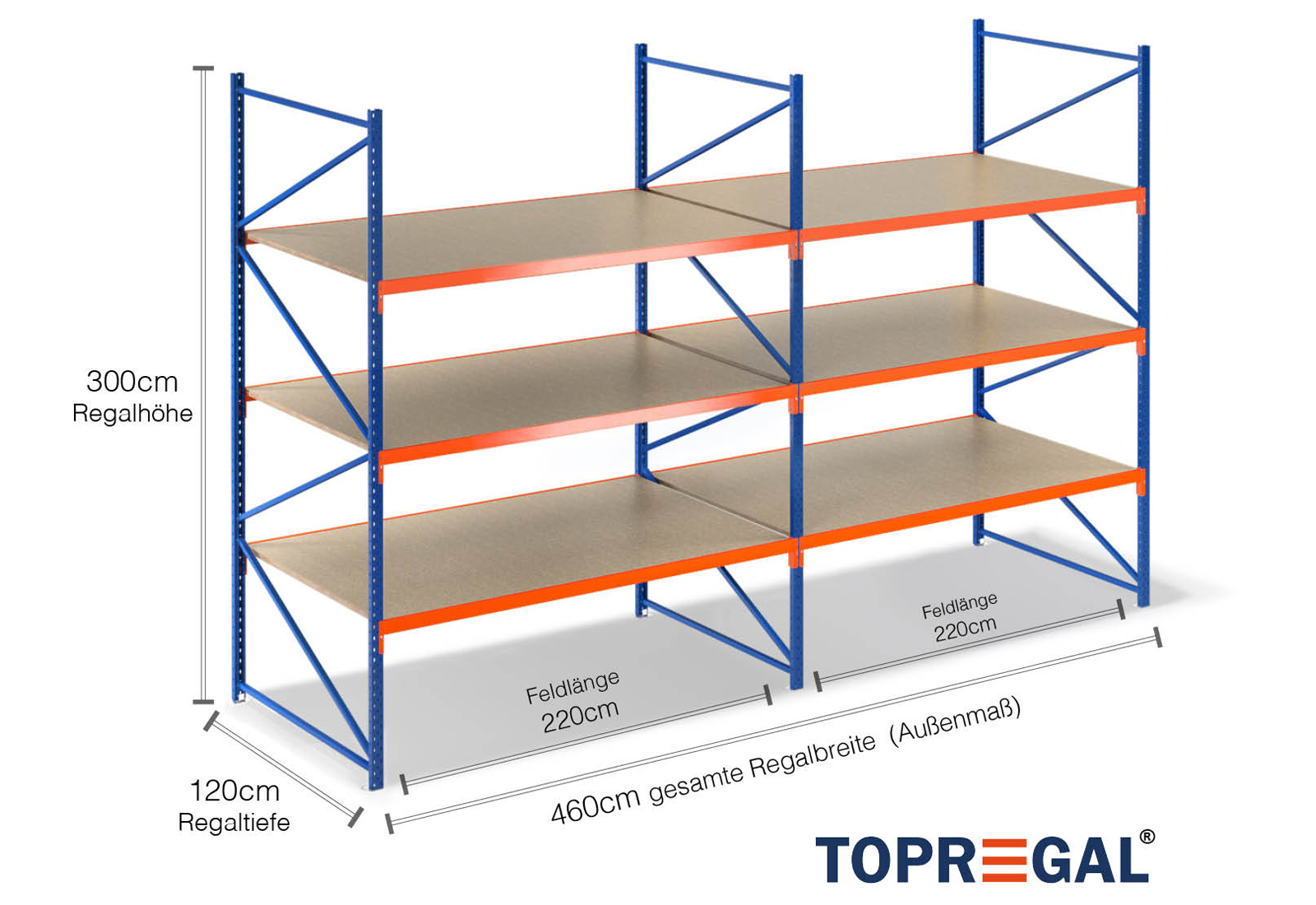 Todos los datos se refieren a cargas distribuidas uniformemente. Cuando esté cargado, no deben superarse la carga de estante ni la carga de campo. En principio, durante el uso se aplican las directrices vigentes sobre seguridad y salud en el trabajo (Norma alemana DGUV 208-061). TOPREGAL no asume ninguna responsabilidad por accidentes/daños causados por un uso inadecuado. Nuestro equipo de expertos asesores estará encantado de responder a sus preguntas. Las medidas indicadas son aproximadas y pueden variar en algunos centímetros. Póngase en contacto con nosotros si necesita las dimensiones exactas del producto que desea.