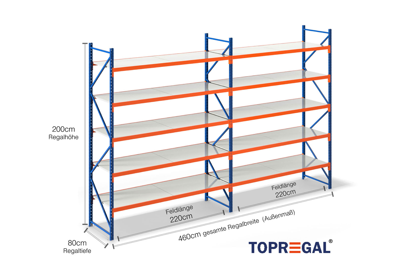 4,6 m estantería industrial LR2000 / 80 cm profundidad / 2 m altura /5 niveles / baldas acero