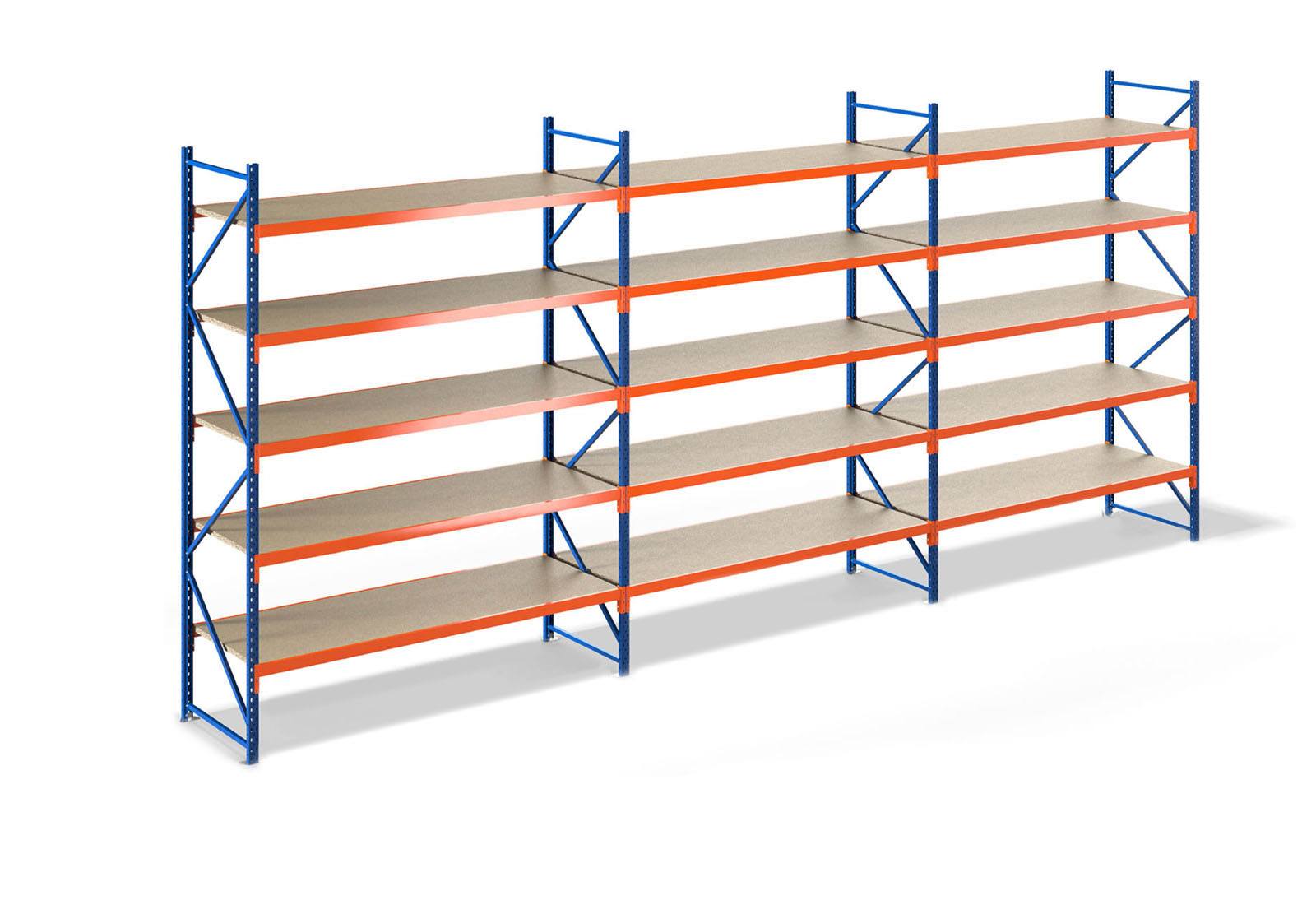 6,9 m estantería industrial LR2000 / 60 cm profundidad / 2 m altura /5 niveles / baldas madera