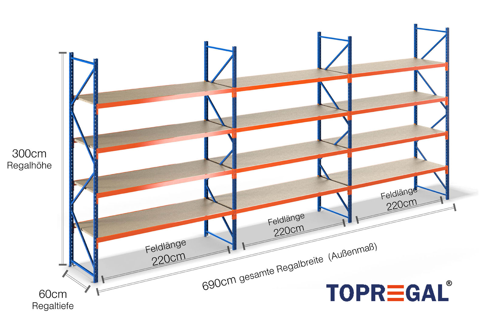 Todos los datos se refieren a cargas distribuidas uniformemente. Cuando esté cargado, no deben superarse la carga de estante ni la carga de campo. En principio, durante el uso se aplican las directrices vigentes sobre seguridad y salud en el trabajo (Norma alemana DGUV 208-061). TOPREGAL no asume ninguna responsabilidad por accidentes/daños causados por un uso inadecuado. Nuestro equipo de expertos asesores estará encantado de responder a sus preguntas. Las medidas indicadas son aproximadas y pueden variar en algunos centímetros. Póngase en contacto con nosotros si necesita las dimensiones exactas del producto que desea.