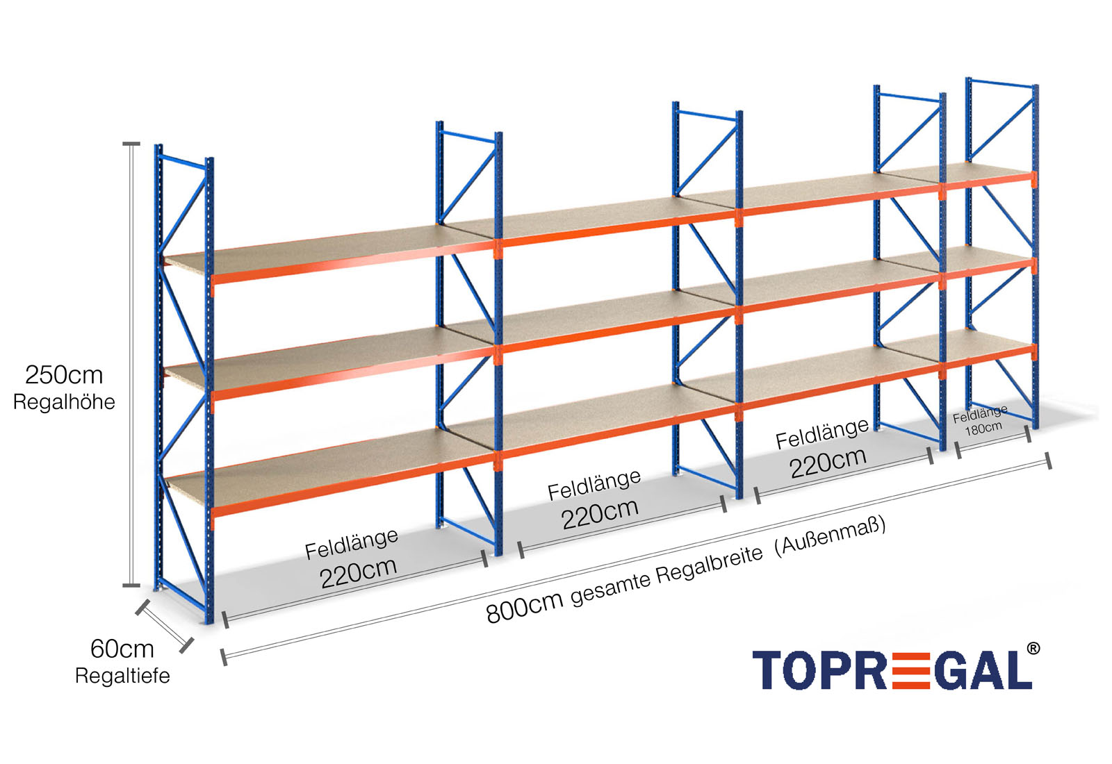 Todos los datos se refieren a cargas distribuidas uniformemente. Cuando esté cargado, no deben superarse la carga de estante ni la carga de campo. En principio, durante el uso se aplican las directrices vigentes sobre seguridad y salud en el trabajo (Norma alemana DGUV 208-061). TOPREGAL no asume ninguna responsabilidad por accidentes/daños causados por un uso inadecuado. Nuestro equipo de expertos asesores estará encantado de responder a sus preguntas. Las medidas indicadas son aproximadas y pueden variar en algunos centímetros. Póngase en contacto con nosotros si necesita las dimensiones exactas del producto que desea.