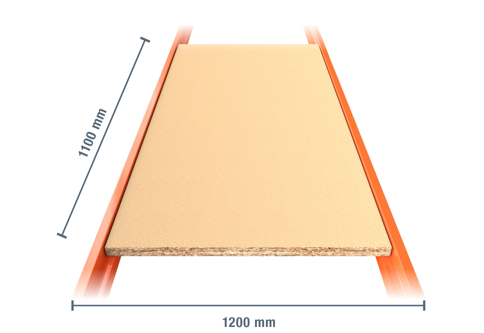 - 1 x 1.100 mm baldas de madera para estantes almacenamiento LR2000 / 1.200 mm profundidad / 25 mm espesor / 1 x barra de profundidad