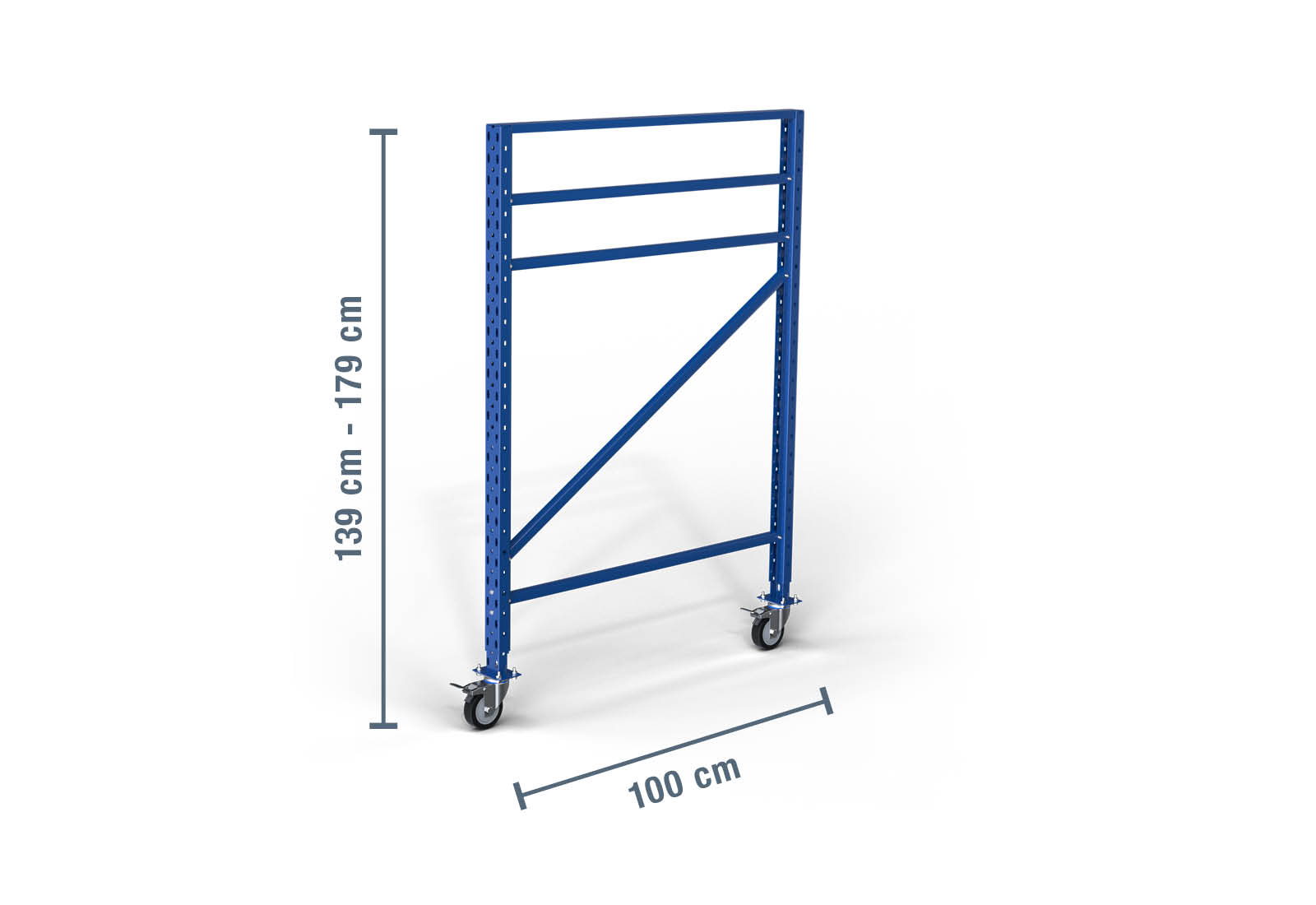 - 1 x 1.390 - 1.790 mm soporte / altura ajustable / con ruedas para estante de almacenamiento LR2000 / 100 cm profundidad