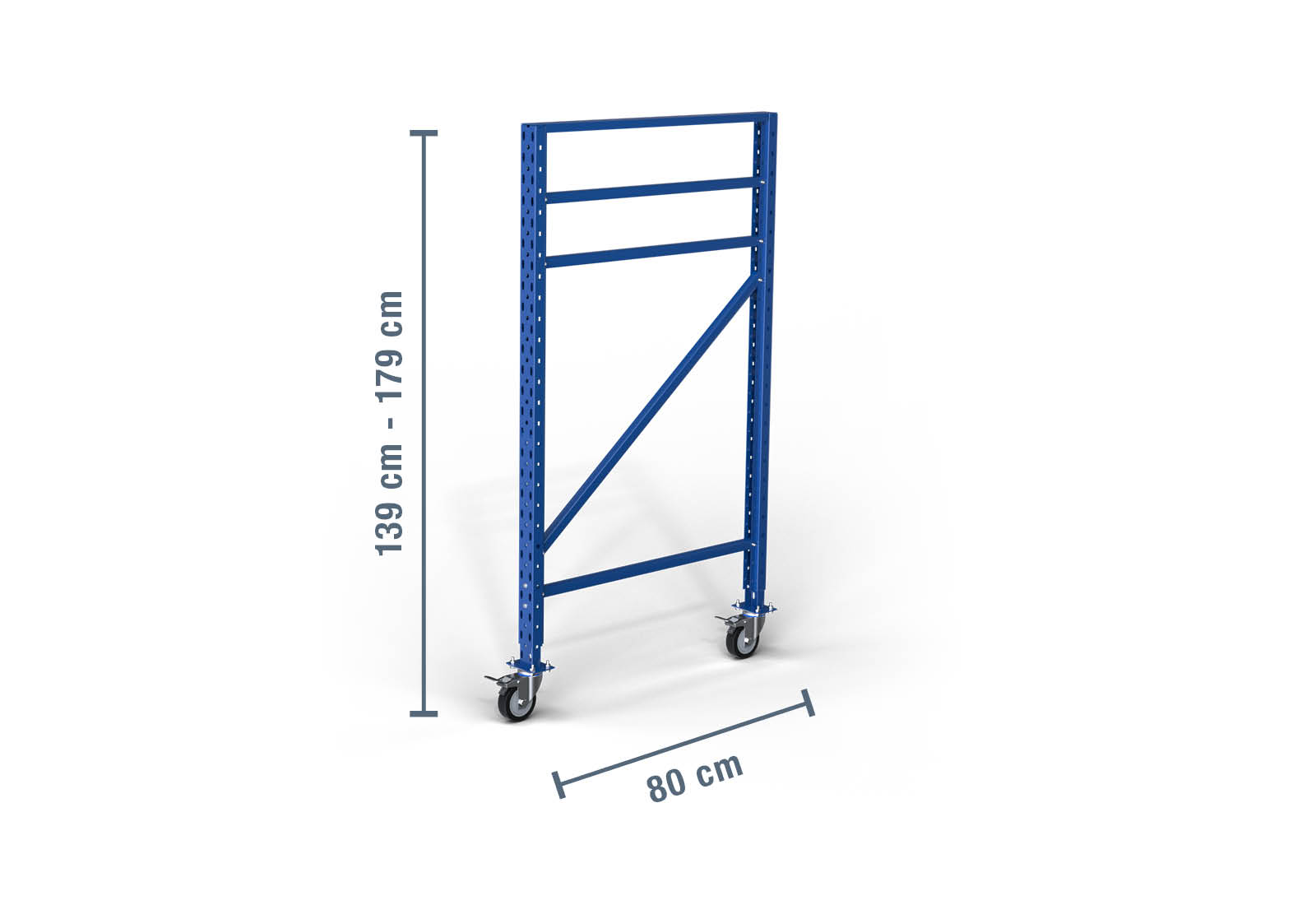- 1 x 1.390 - 1.790 mm soporte / altura ajustable / con ruedas para estante de almacenamiento LR2000 / 80 cm profundidad