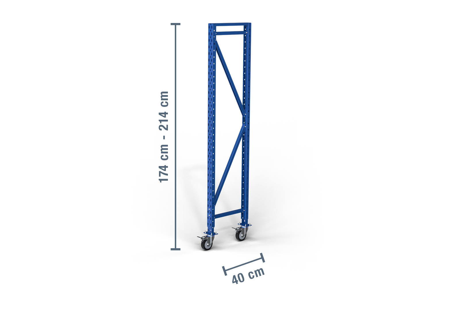 - 1 x 1.740 - 2.140 mm soporte / altura ajustable / con ruedas para estante de almacenamiento LR2000 / 40 cm profundidad