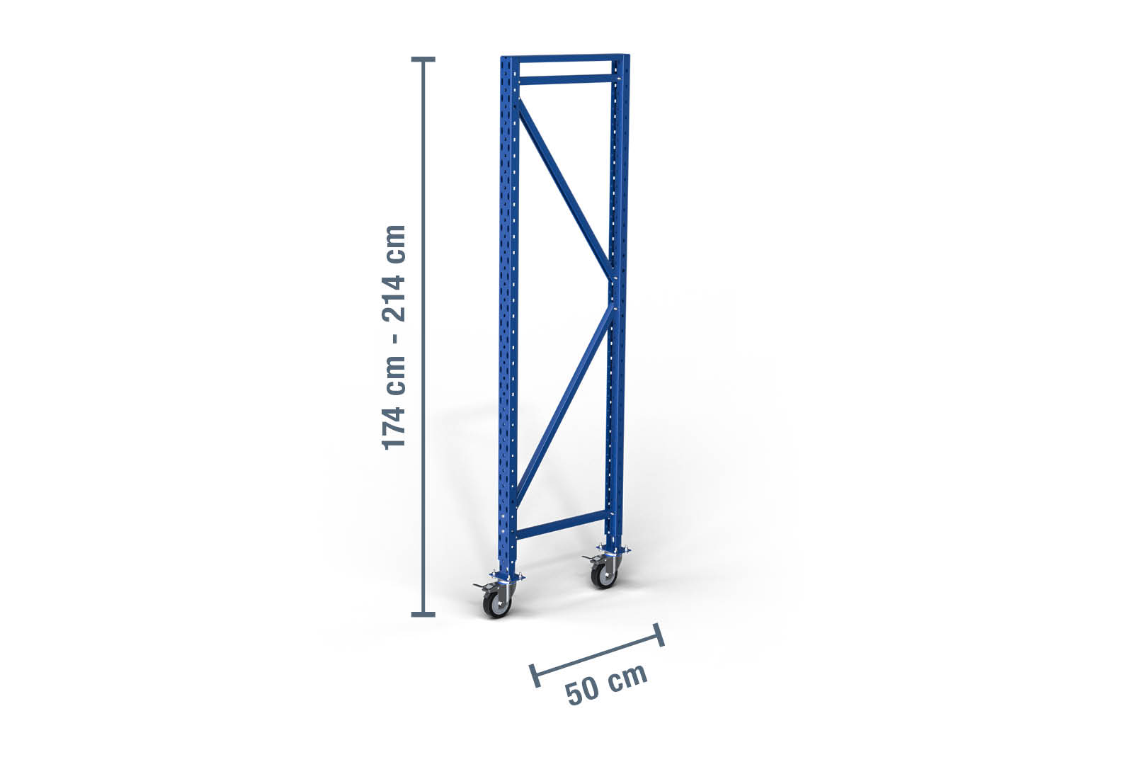 - 1 x 1.740 - 2.140 mm soporte / altura ajustable / con ruedas para estante de almacenamiento LR2000 / 50 cm profundidad