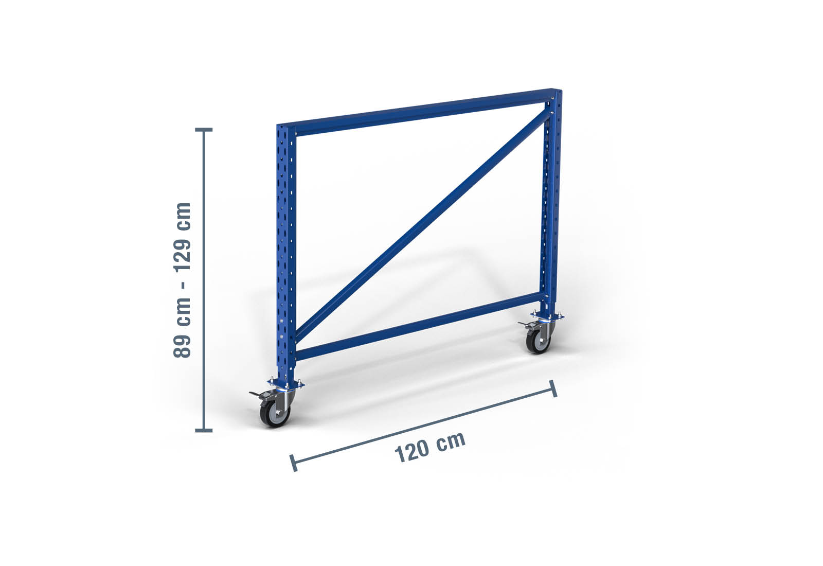 Este soporte de estante de almacenamiento es particularmente práctico gracias al ajuste de altura flexible de 890 - 1.290 mm. Gracias a las ruedas giratorias con freno de estacionamiento, la mesa de embalaje se puede colocar y fijar fácilmente en el lugar deseado. De este modo puede crear una estación de embalaje móvil o una estación de trabajo con una profundidad de 1.200 mm. Con este soporte de estante de almacenamiento con ruedas, puede ampliar su estante de almacenamiento existente o montar un nuevo estante de almacenamiento adaptado individualmente a sus necesidades.