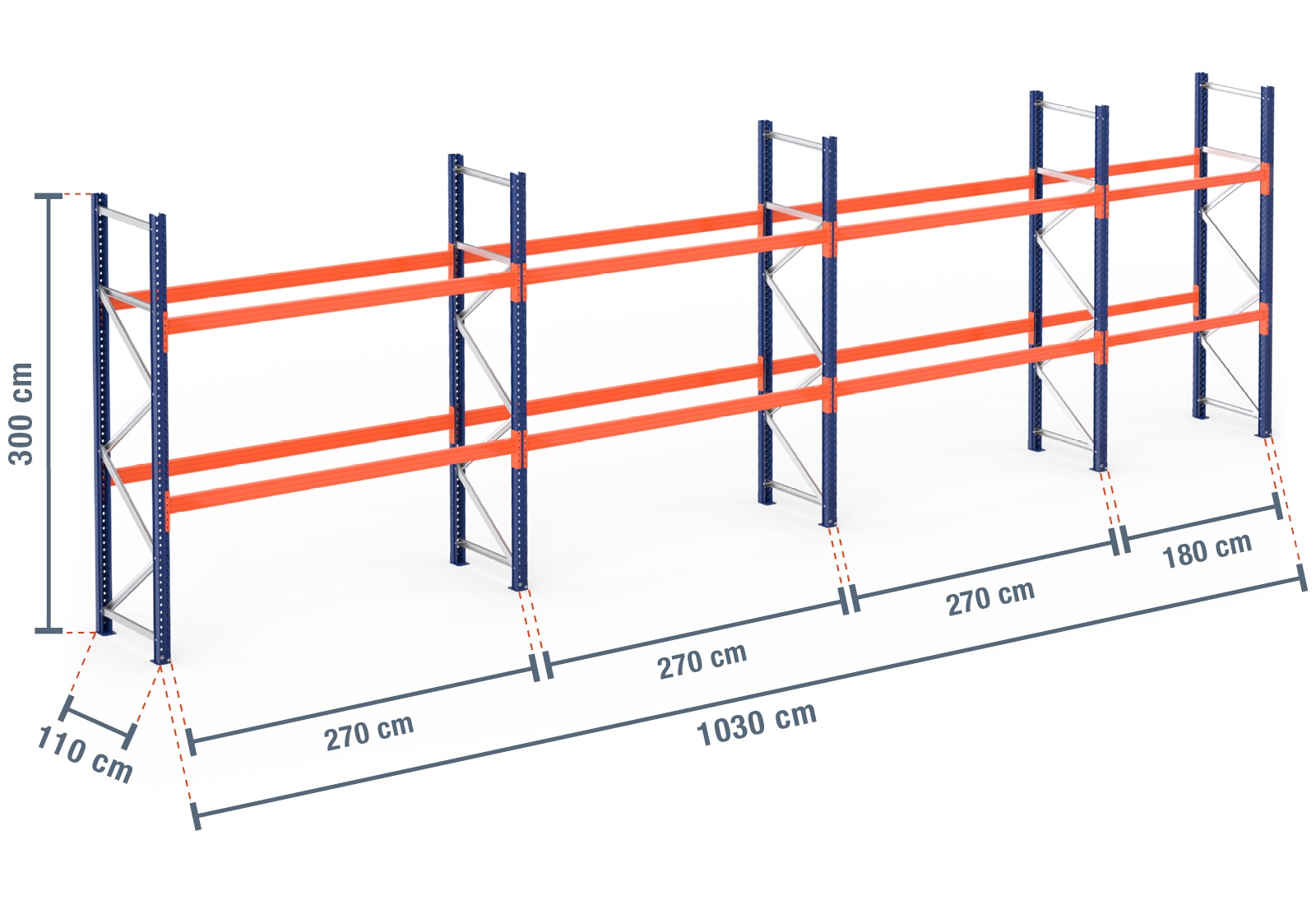 10,3 m estantería para palet PR9000 / 110 cm profundidad / 3 m altura / 2 estantes para 33 europalés