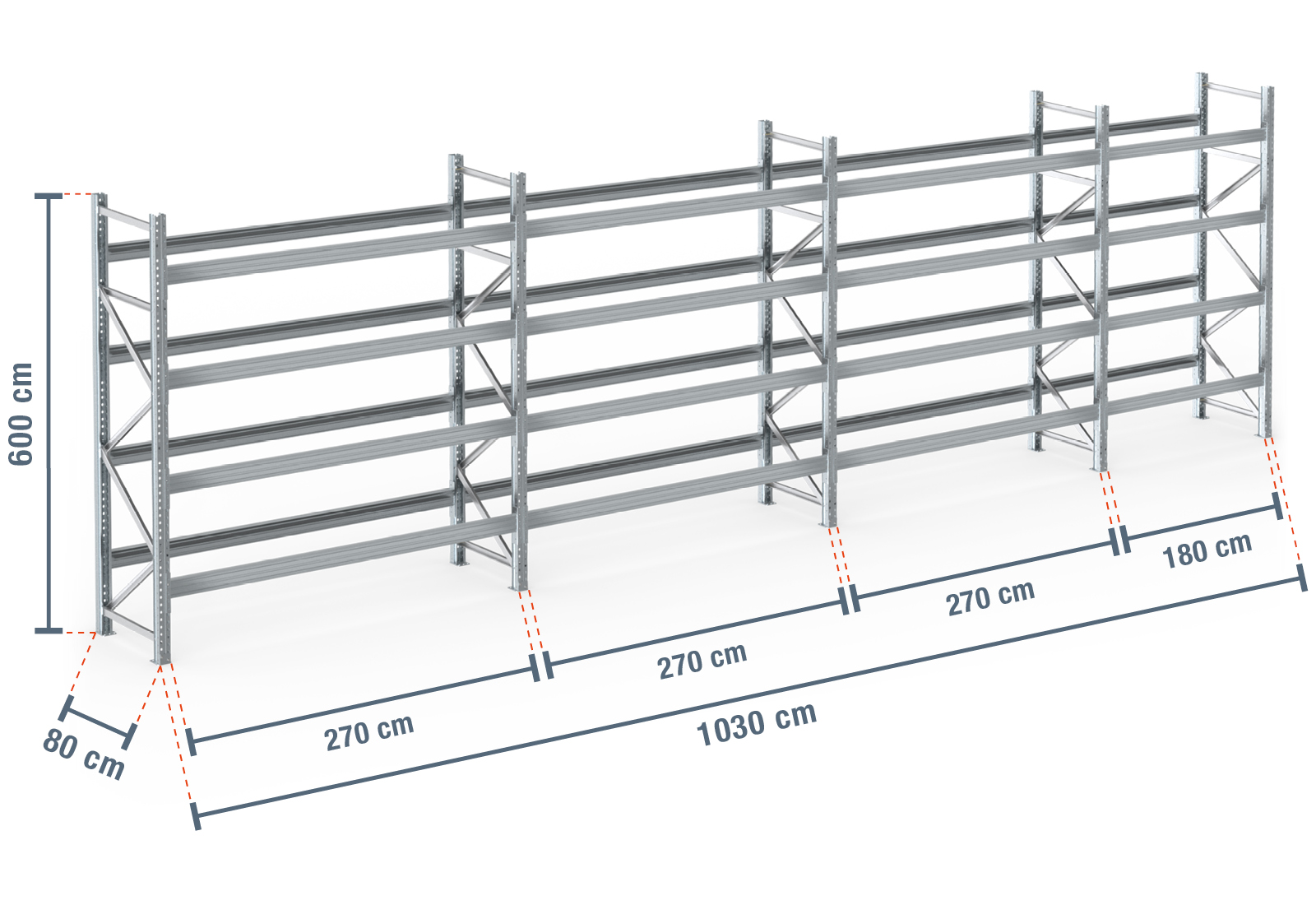 10,3 m estantería para palet PR9000F / 80 cm profundidad / 6 m altura / 4 estantes para 55 europalés