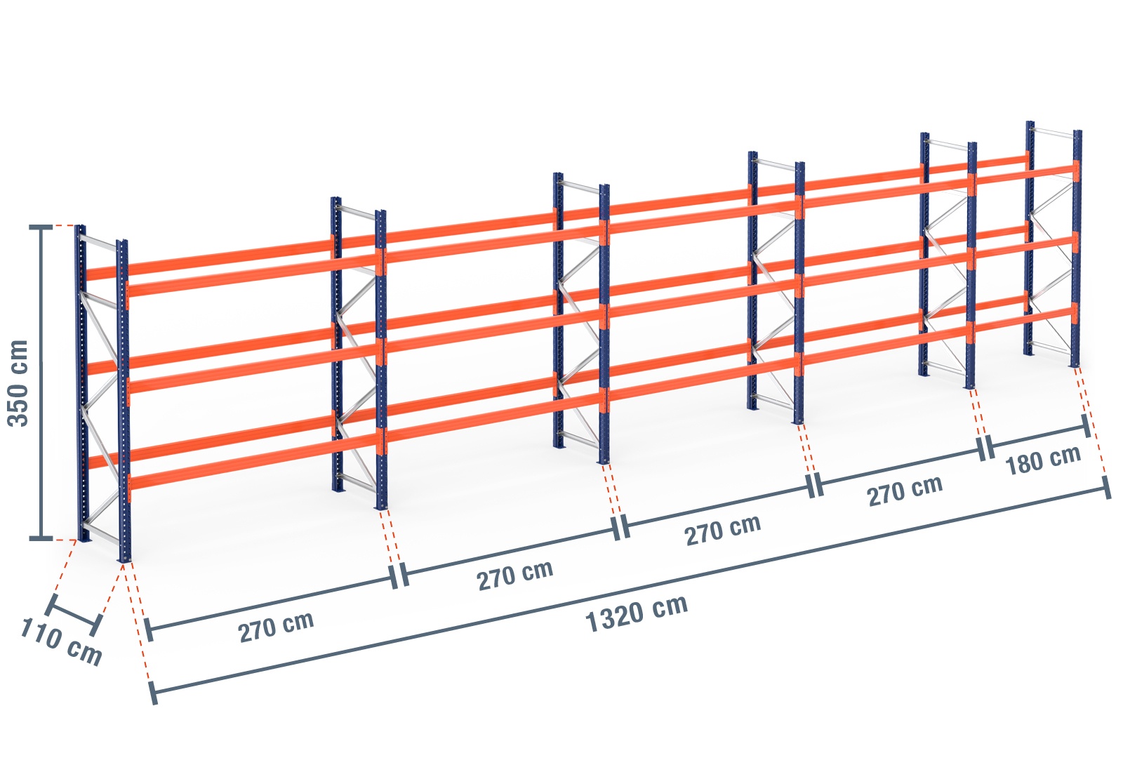 13,2 m estantería para palet PR9000 / 110 cm profundidad / 3,5 m altura / 3 estantes para 56 europalés