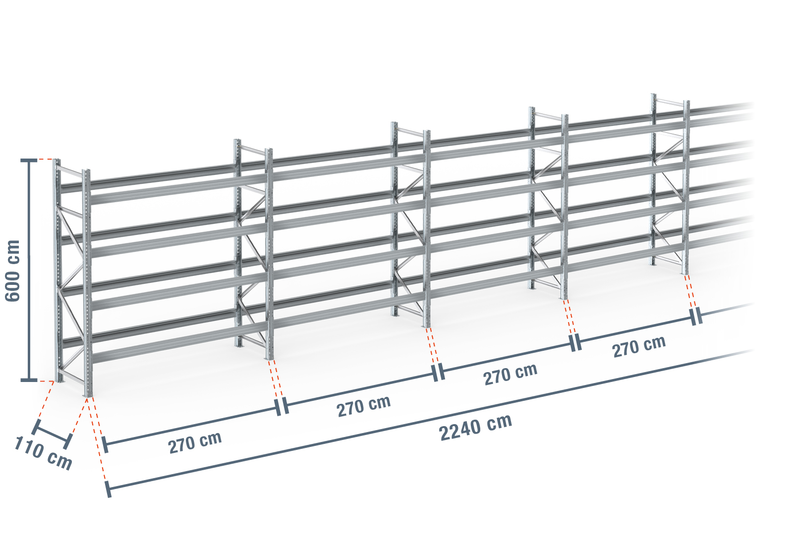 22,4 m estantería para palet PR9000F / 110 cm profundidad / 6 m altura / 4 estantes para 120 europalés