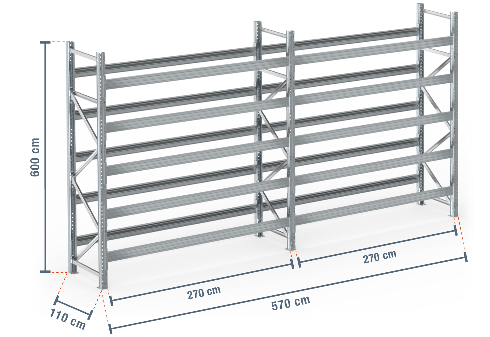 - Estantería de paletas PR4500 - Carga de bahía (máx.): 4500 kg / Carga de estantería (máx.): 1500 kg.