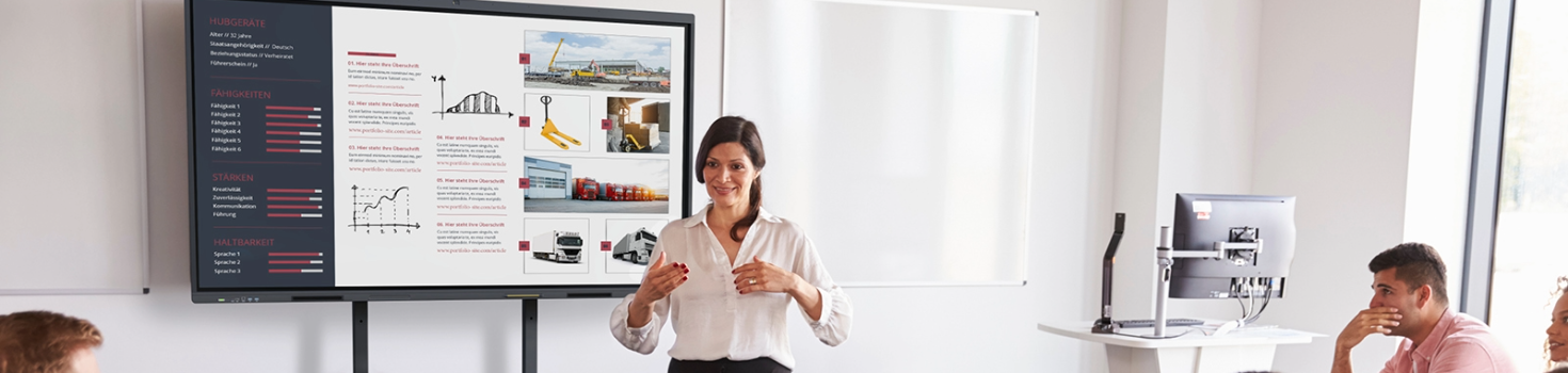 Hoy en día, el equipamiento técnico forma parte natural de la planificación de una sala de conferencias. Las pantallas interactivas sustituyen cada vez más a las tradicionales pizarras blancas o proyectores y crean nuevas oportunidades de colaboración creativa. Los dispositivos modernos combinan la función táctil, la tecnología de videoconferencia y las herramientas de presentación en un solo sistema, ideal para reuniones híbridas o trabajo colaborativo. Un ejemplo es el modelo IWBT-86 de TOPREGAL, que es versátil gracias a su gran pantalla 4K, cámara integrada, altavoces y opciones de conexión inalámbrica, ya sea para presentar conceptos, editar contenidos de forma colaborativa o realizar videoconferencias con equipos de distintas ubicaciones. Se puede utilizar a través de portátiles conectados o de forma independiente mediante el sistema Android integrado, lo que permite celebrar reuniones espontáneas sin necesidad de tecnología adicional.
