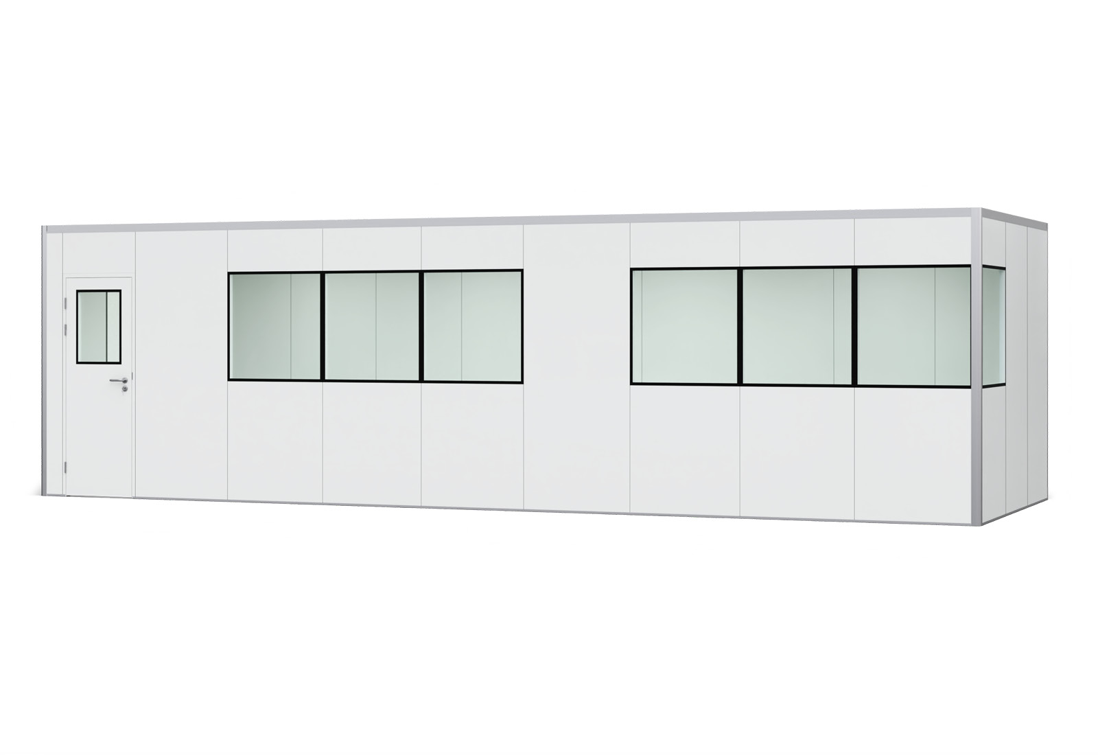 Oficina prefabricada, oficina industrial PREFAB-27, 8 ventanas, 1 puerta (15 paneles de pared, 9 paneles para cubrir)