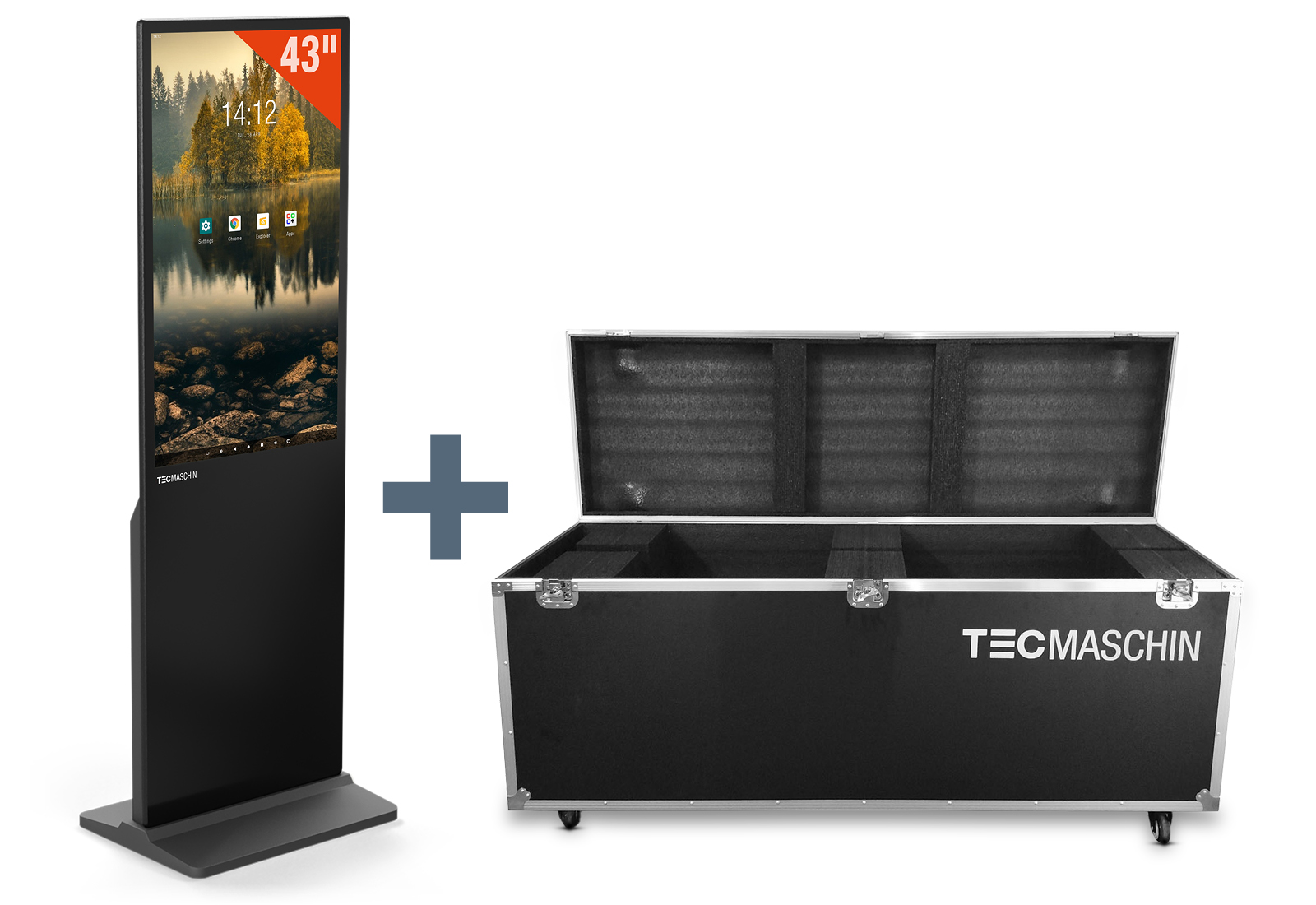 - 1 x Tótem multimedia DKS-LED43 incl. caja de transporte, negro, 43 in Expositor, Android 11, TecMaschin